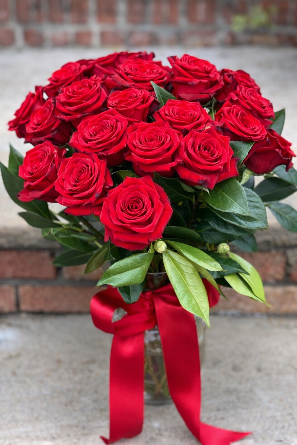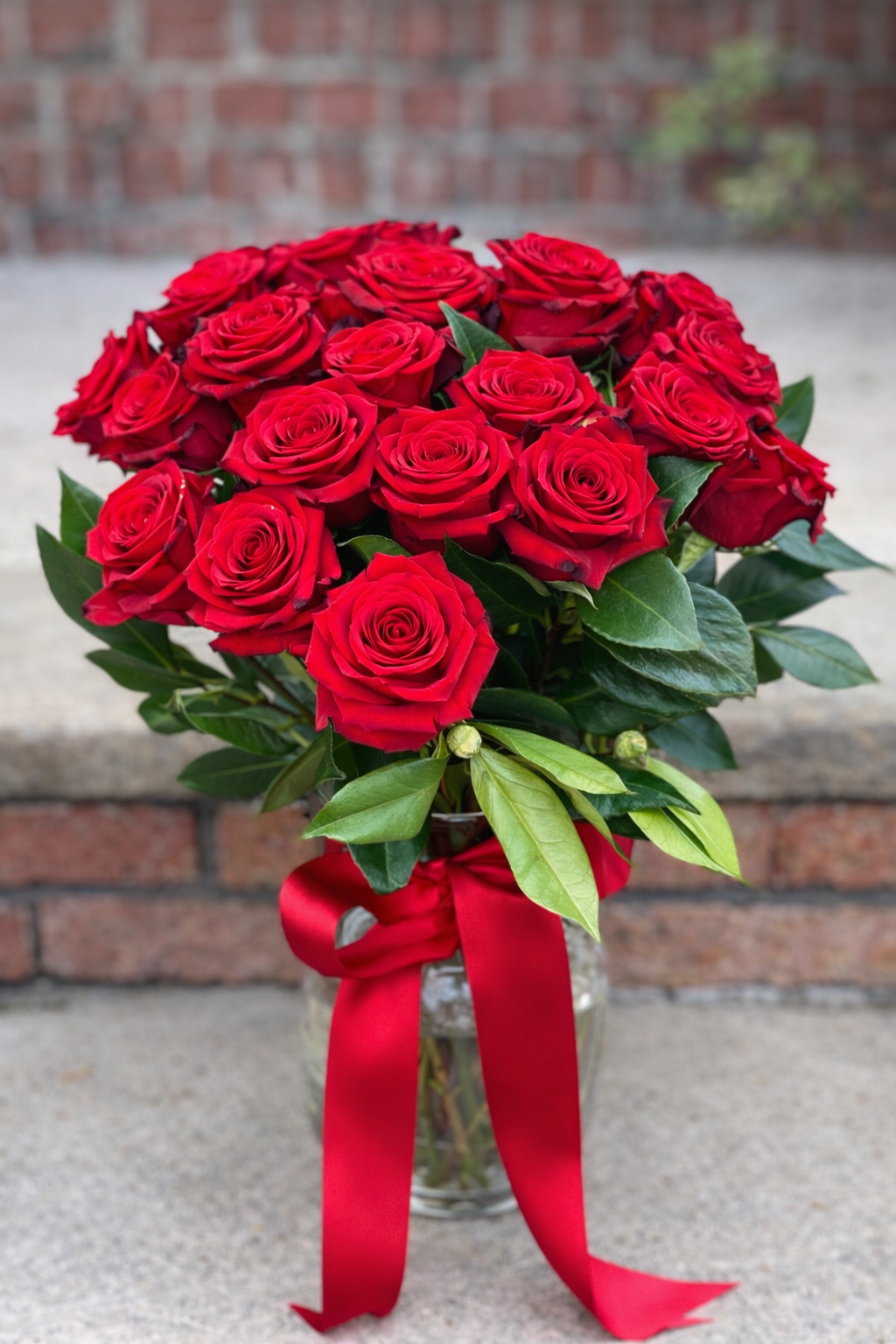 2 dozen long stemmed red roses with vase.