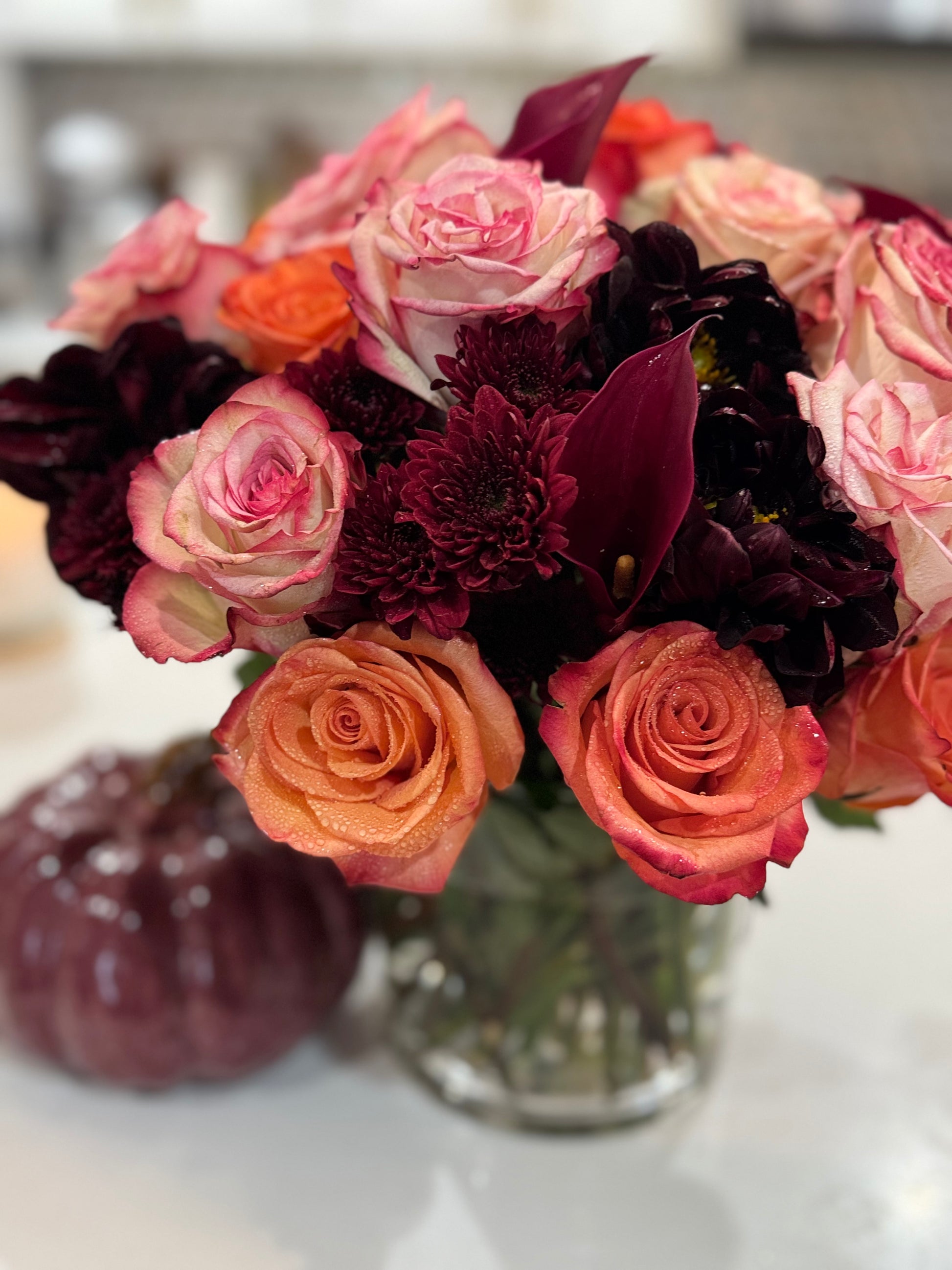 This rich fall arrangement perfect for any table decor for the holidays for hosting.